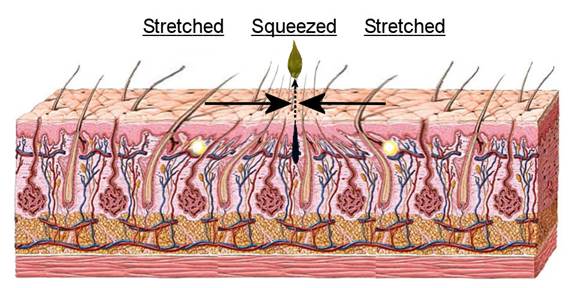 The Cause of Acne Acne has nothing to do with your dirty hands, greasy foods, or unwashed pillows. Total BS. I hypothesize that acne is caused primarily by the stretching or squeezing of the skin. Stretching the skin leads to the formation of whiteheads, or what I call "fluid pimples." Squeezing the skin leads to blackheads, or what I call “solid pimples.” So why hasn’t this simple explanation been suggested before? Because pimples typically appear ~24 hours after the triggering action and such small everyday actions are forgotten by then. More specifically, whether a pimple forms or not depends on three factors:
