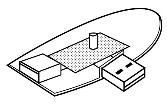 Shown above is the base of the device. Not shown is the body which attaches to the base at the rod of the isometric joystick in the center. All pressure applied from the fingers on the body converges at the rod. The dotted rectangle represents the circuit board for the strain gauges. An optional USB port is shown for an additional USB device. The entire bottom of this base is rubberized to grip onto any flat surface. The base may be smaller than shown, and the isometric joystick may not be located in the center as shown. The invention is a mouse that senses pressure instead of movement. Aside from the buttons, the mouse does not move at all, which makes it different than a regular joystick. On a regular joystick (e.g. analog stick of console controllers), if you wanted to move a cursor left and then right, the joystick would have to be pushed from the center position to the left, and then back to the center, then to the right. © Buism 2010 |